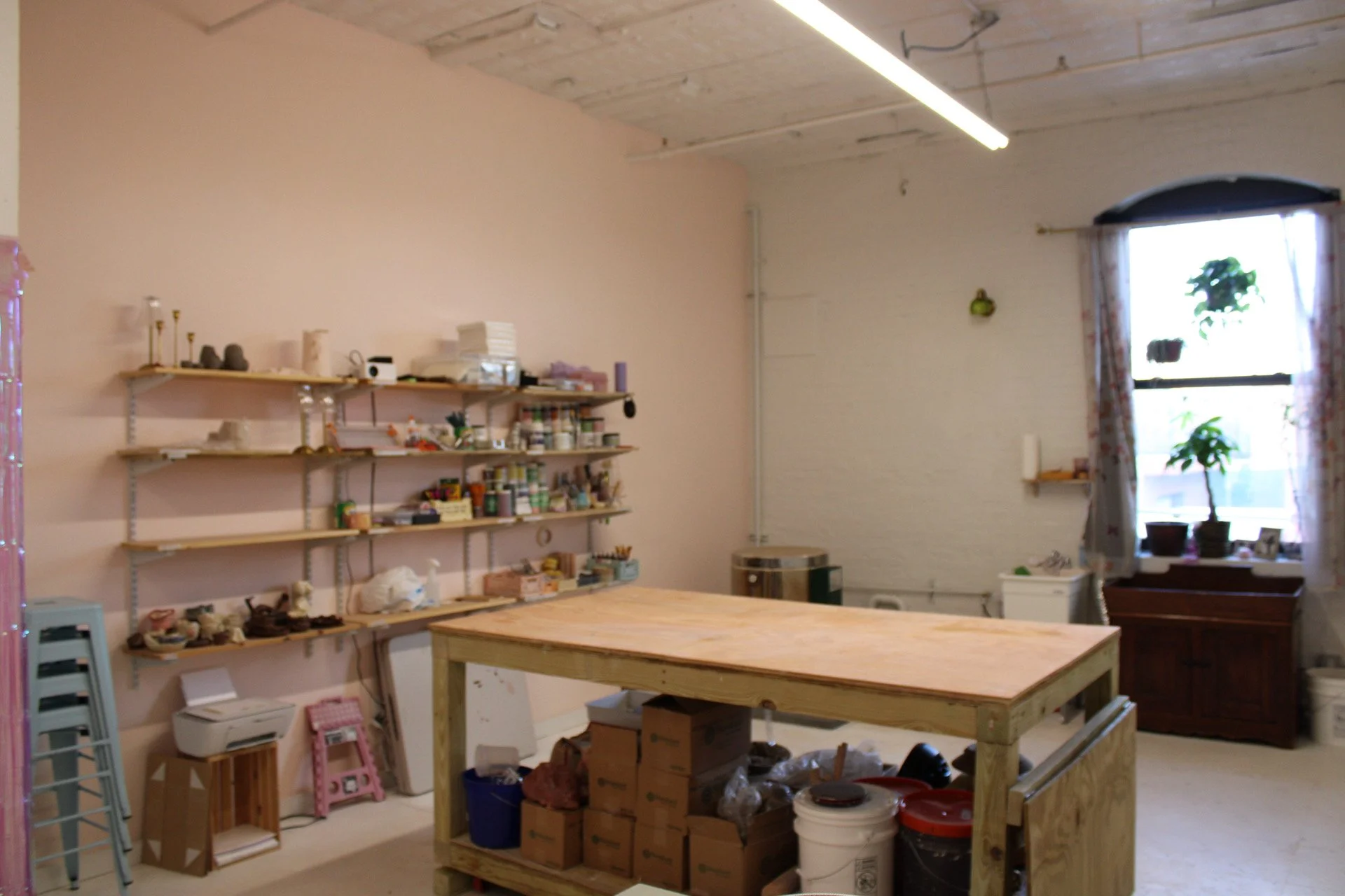 Mostly Good Studios is a multi-disciplinary arts sanctuary founded by artist Kaitlyn Sather. Starting out as ‘ceramic club’ meet-ups in parks, bars, or anywhere Kaitlyn could share her love for mud and creating in community. Kaitlyn was committed to growing her dream of pulling the inner play-doh squishing child out of everyone she could. After landing in a place to call home at the Cigar Factory in 2024, Mostly Good Studios began honing in on how to use this new space and opportunity to expand on what they truly wanted to share- art making is for everyone, and an essential element of a soft and loving world. Today, that message takes shape with a wide range of programming in various art disciplines, like screen printing, painting, culinary arts, textile arts, and of course, clay. Kaitlyn hopes that through Mostly Good Studios, she can offer a place of safety, for people to play, explore, and create- sharing in joy and community with one another.